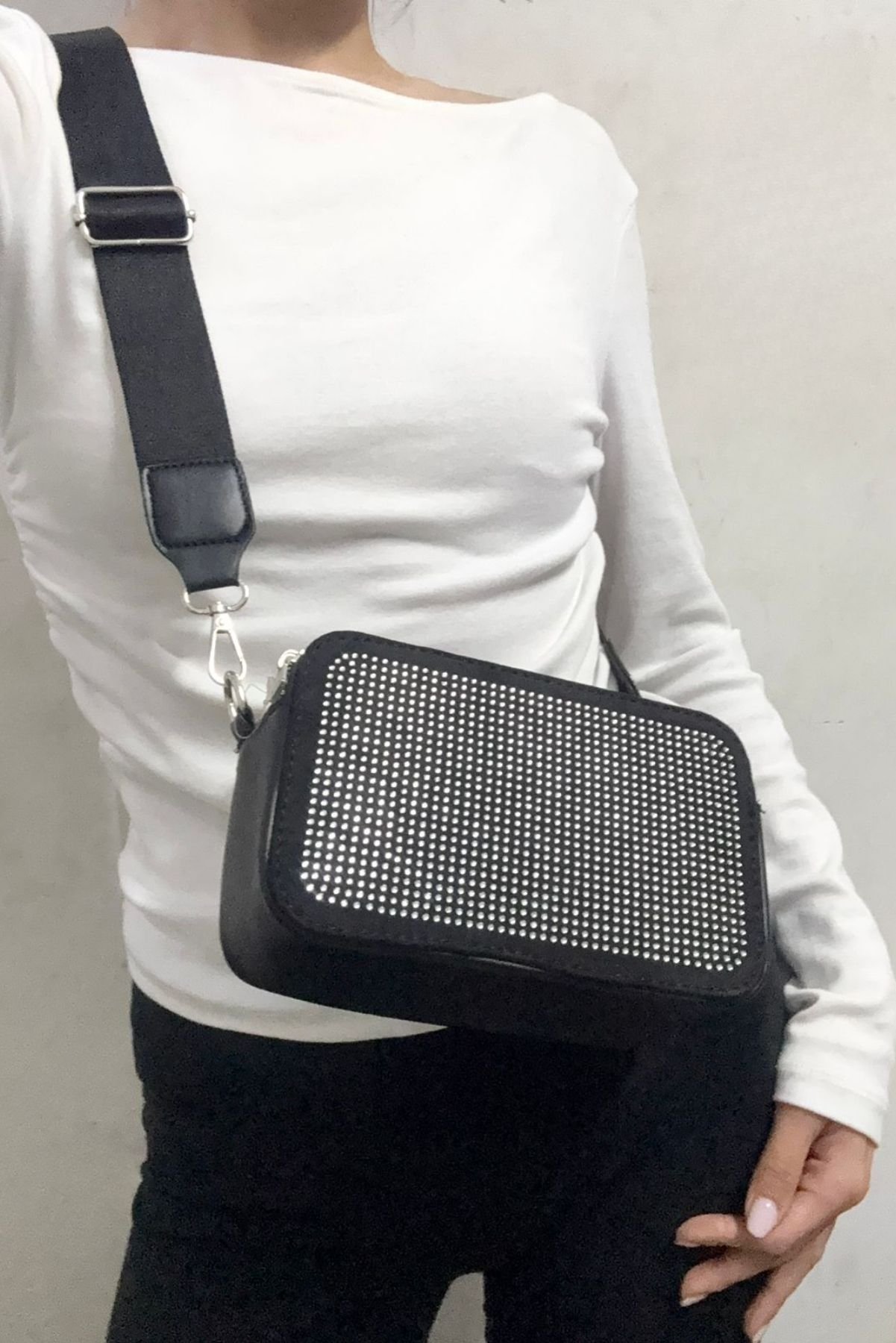 Cartera bandolera rectangular con bolsillo delantero